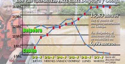 Durante una semana lluviosa, el río Acre se desplazó entre Bolpebra y Cobija creando una enorme brecha en las cotas de inundación de ambos municipios acreanos de Bolivia. | Infografía Sol de Pando Para lectura en móvil usar pantalla horizontal | © Redacción Sol de Pando en Cobija Bajar La ciudad de Cobija amaneció este martes, 27 de febrero, ...Leer más