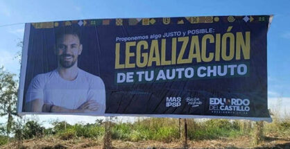 Banner de la campaña electoral, en Guayaramerín. En el cálculo del ex Ministro de Gobierno, su oferta podía captar alrededor de medio millón de votos, cantidad que el mismo candidato había estimado como propietarios de “autos chutos”, es decir vehículos indocumentados. | Foto archivo Sol de Pando Para lectura en móvil usar pantalla horizontal ...Leer más