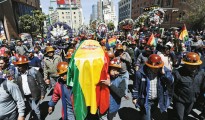 Los asalariados pertenecientes a la Federación Sindical de Trabajadores Mineros de Bolivia transportan el ataúd con los restos de Héctor Choque Gutiérrez. A las 14:20 del miércoles, un cortejo fúnebre acompañó ...Leer más