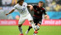 Jermaine Jones de Estados Unidos y Toni Kroos de Alemania disputándose el brazuca durante el partido que se jugó en el Arena Pernambuco de Recife. | Foto ©Getty Images © TiroLibre.com | Fifa Quedaron definidos ...Leer más