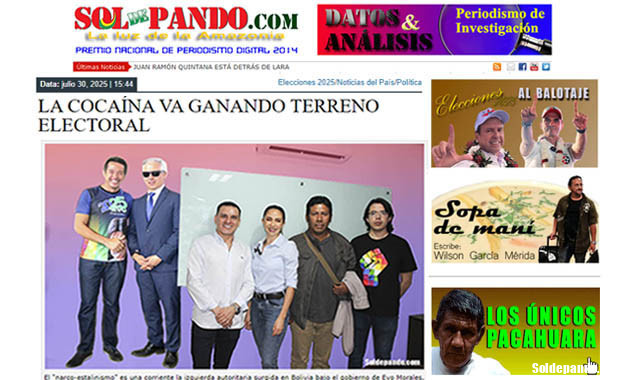 En su edición del 30 de julio, Sol de Pando publicó un informe acerca de la cobertura y respaldo que brindan los políticos bolivianos a empresarios de Santa Cruz comprometidos con la exportación de cocaína, dentro un sistema oficial de legitimación. | Foto Sol de Pando