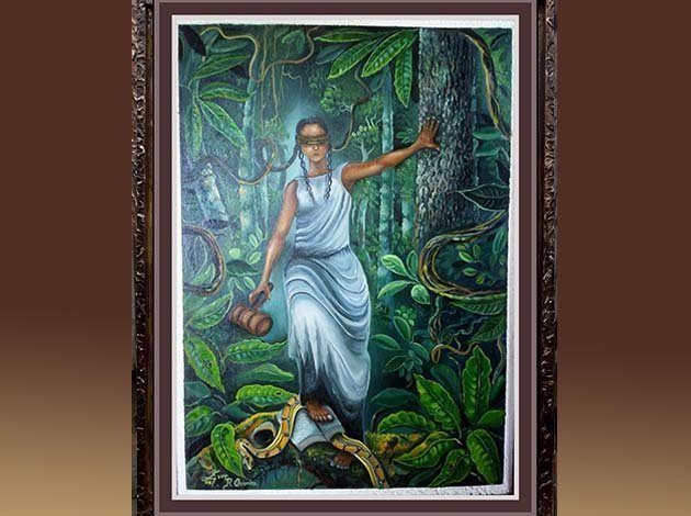 Sus cuadros que salieron a luz son un espejo mágico del bosque y sus profundidades, de los seres que lo habitan, de los hombres y mujeres que recolectan los alimentos que dan la fecunda tierra y las prodigiosas aguas de la Amazonia.