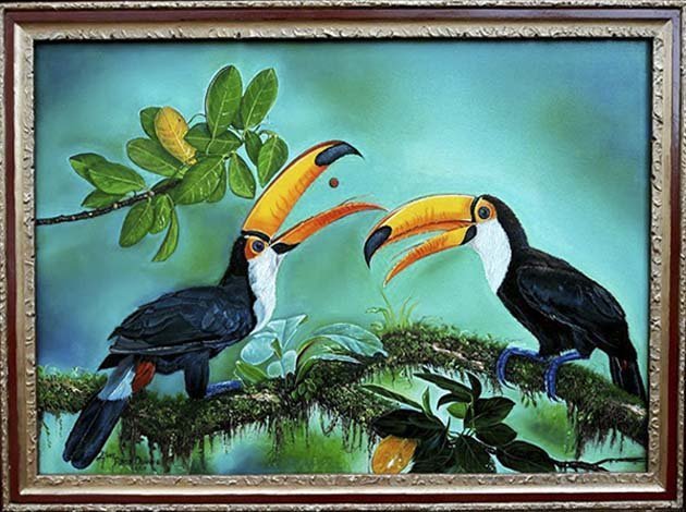 Sus cuadros que salieron a luz son un espejo mágico del bosque y sus profundidades, de los seres que lo habitan, de los hombres y mujeres que recolectan los alimentos que dan la fecunda tierra y las prodigiosas aguas de la Amazonia.