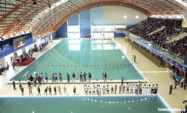 La infraestructura a cargo de la administración municipal cuenta con una piscina reglamentaria, una tribuna con graderías para más de 1.500 personas, trampolines, fosa para salto, vestuarios, sala de máquinas de calentamiento, gimnasio, boleterías, salas antidoping, kioscos, snack, baterías de baño para el público, además sala de prensa y cabinas de radio y televisión. La obra fue construída en un área de más de 9.000 metros cuadrados.