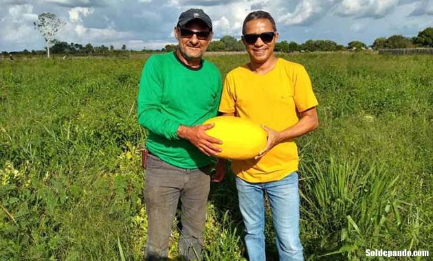 Essa é a primeira vez que eles cultivam a fruta, dos 1200 pés foram plantados 200 são amarelas. A colheita tem sido bem superior ao que previram no início, pelo menos 500 melancias já foram colhidas.