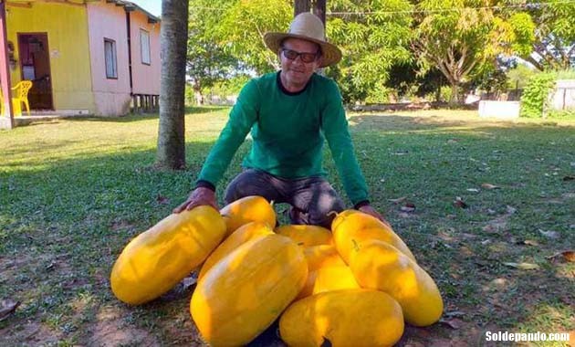 Em agosto do ano passado, Romoaldo conheceu a fruta em uma feira em Jarú em Rondônia, trouxe a semente para o Acre e guardou na geladeira. Este ano plantou apenas 75 covas junto com o híbrido da melancia de casca verde. A adaptação foi boa e agora ele está colhendo a melancia que alcança entre 8 e 16 quilos e é muito adocicada.