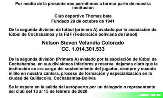 El directorio del club Bata de Quillacollo, al mando de Alvaro Mejía, aclaró, según Los Tiempos, “que su institución no trajo a los nueve futbolistas colombianos que presuntamente fueron engañados por un súbdito de su país, además advirtió que iniciarán acciones legales contra éste y otro de nacionalidad argentina por estafa, uso indebido de la imagen y el nombre de la institución para cometer semejantes ilícitos”.